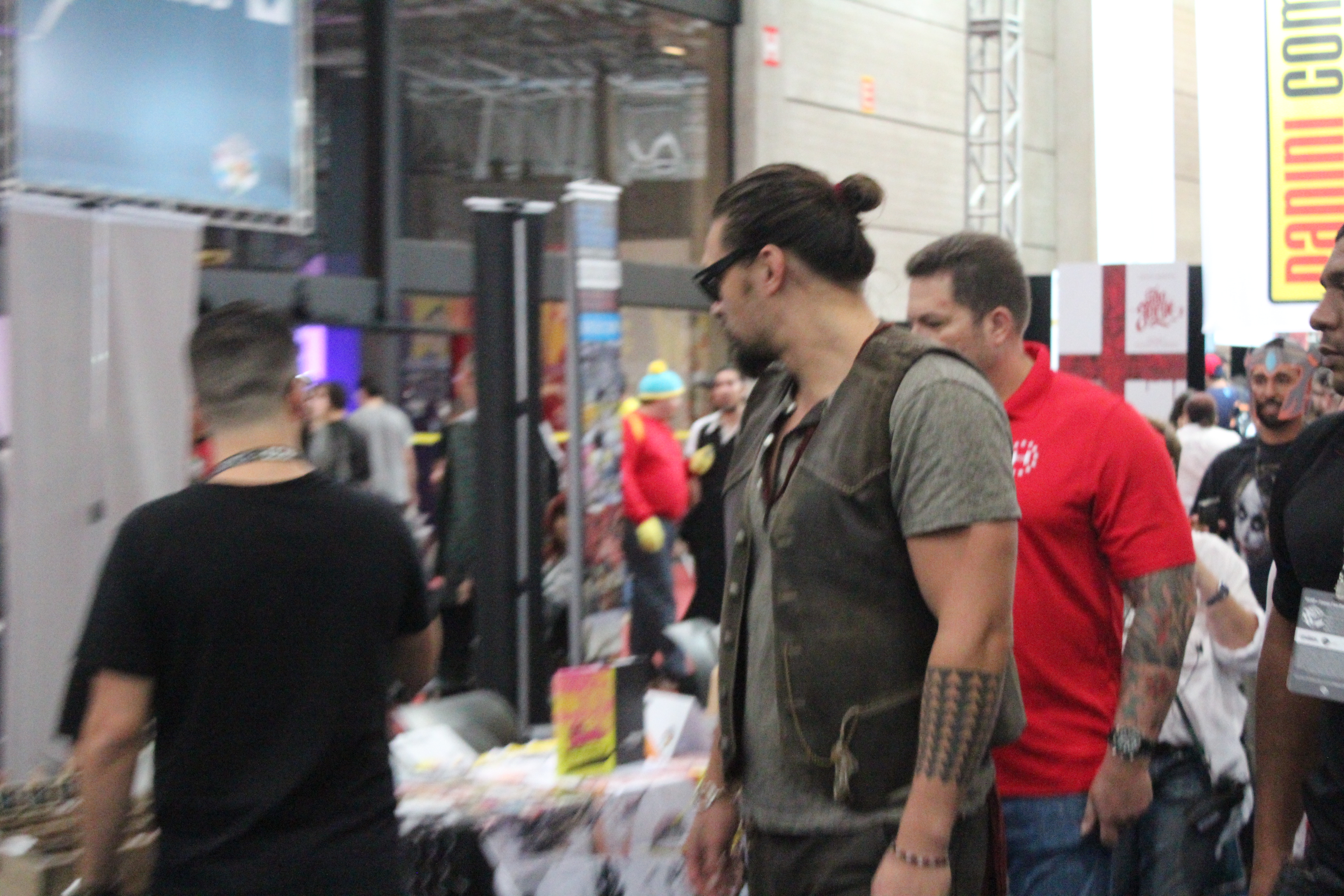 Por exemplo: famosos caminharam entre os mortais. Jason Momoa passeou pelo Artists’ Alley, Mauricio de Sousa passeou pelo evento e visitou o próprio estande, o pessoal do Jovem Nerd jogou videogame. Mas, Momoa estava cercado de seguranças, Mauricio usava uma máscara do Coringa (o que, vamos combinar, FOI SENSACIONAL! :D) e o estande da Marvel foi fechado pro Alottoni e o Azaghal jogarem seus joguinhos.