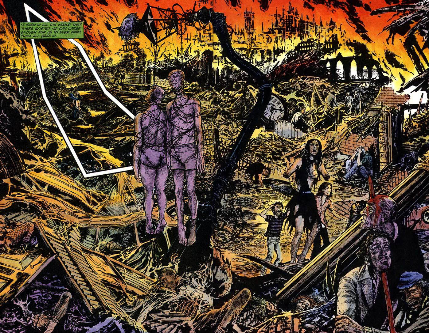 A escolha não poderia ser melhor – e não só porque o contato entre o editor e o quadrinista também trouxe nada menos que V de Vingança logo para a primeira edição da antologia. Moore entendeu que, como ele, quem tinha 10 anos ao ler Marvelman nos anos 60 já estava na casa dos 30 – e essas pessoas adorariam ver o retorno do seu antigo herói, mas com enredos mais adultos, que fizessem sentido para eles. Por isso reencontramos um Mick Moran (sem o “y” do diminutivo) mais velho, casado, sombrio. Por anos, o passado como super-herói foi apenas um pesadelo, um sonho com um final trágico que ele descobre abruptamente que foi real.