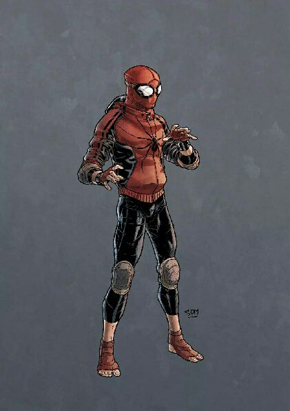 LEMBRE-SE: a ideia aqui é ser mais orgânico possível e se diferenciar do que foi feito antes, mas não quer dizer que o Homem-Aranha será assim pra sempre. Ele não pode fazer um uniforme legal por conta própria, mas vai conhecer quem o faça por ele.