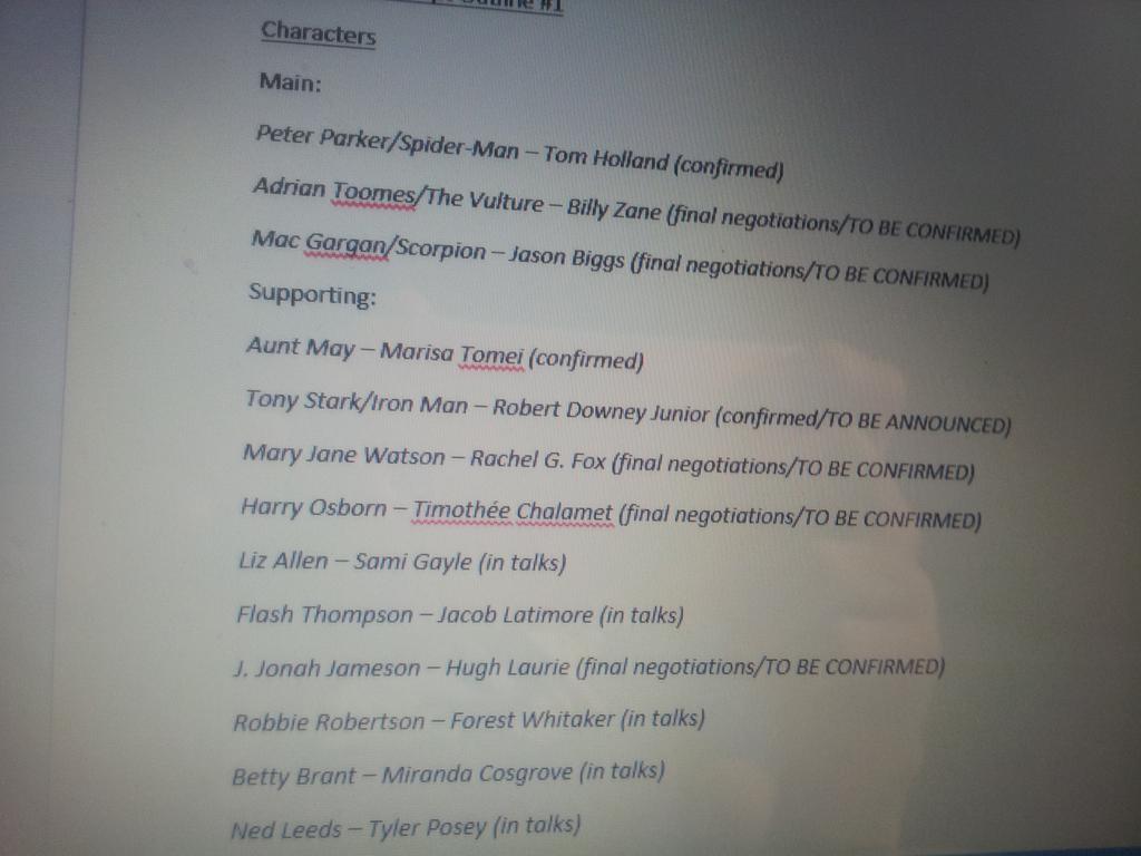 A lista também mostra um variado elenco jovem. Independente dos atores, temos personagens como Liz Allen, Harry Osborn, Flash Thompson, Betty Brant, Mary Jane… Gente que foi importante nas fases Lee/Ditko e Lee/Romita da HQ e com toda a certeza ajudaria nesse clima John Hughes que a Marvel quer. Também tem até um Flash Thompson negro – até porque, do elenco de apoio clássico do Aranha, apenas o Robbie é negro.
