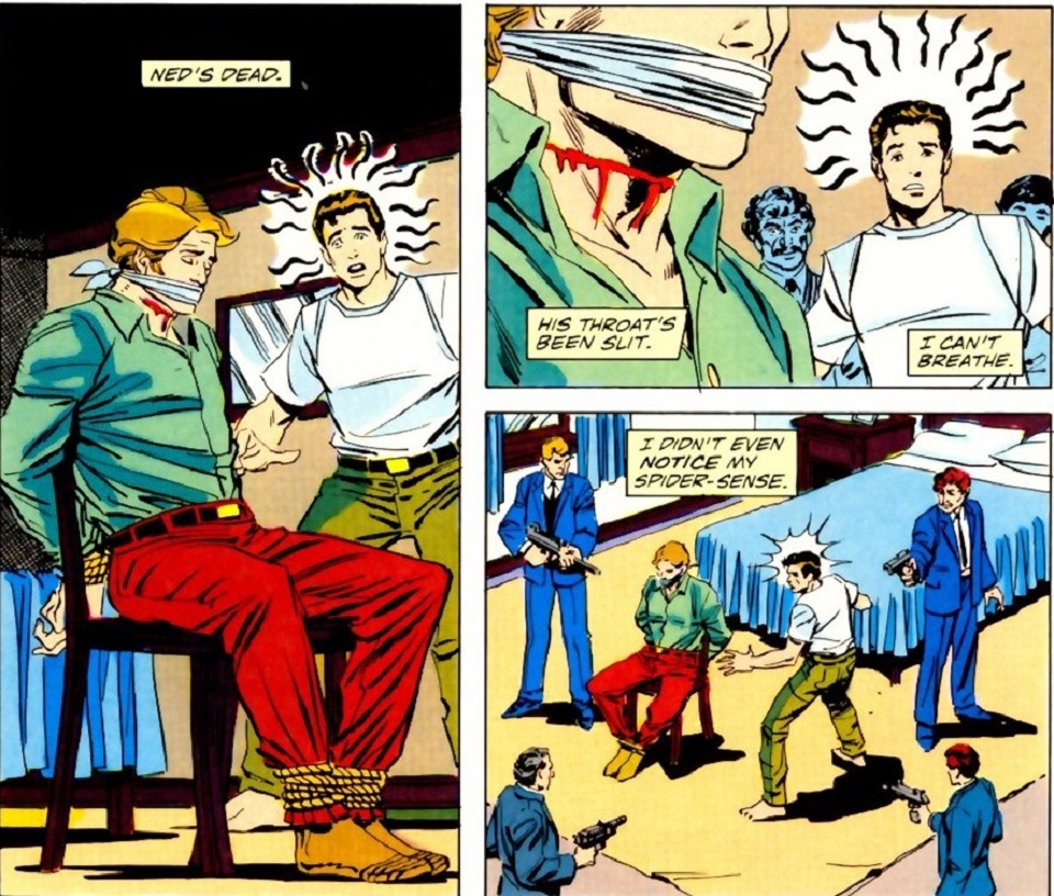 Só que DeFalco sentiu que aquilo não era correto. Assim, assumiu que algumas pistas falsas deixadas pelo Stern sobre o Duende Macabro eram verdadeiras, passando a ser Ned Leeds. Ainda sem revelar essa ~verdade pros leitores, DeFalco seguiu sua fase pelo herói e deixou novas pistas. No especial Spider-Man vs. Wolverine, de 1987, o roteirista Jim Owsley resolveu por conta própria matar Leeds, sem avisar ninguém — e sem saber dos planos pro jornalista ser o vilão.