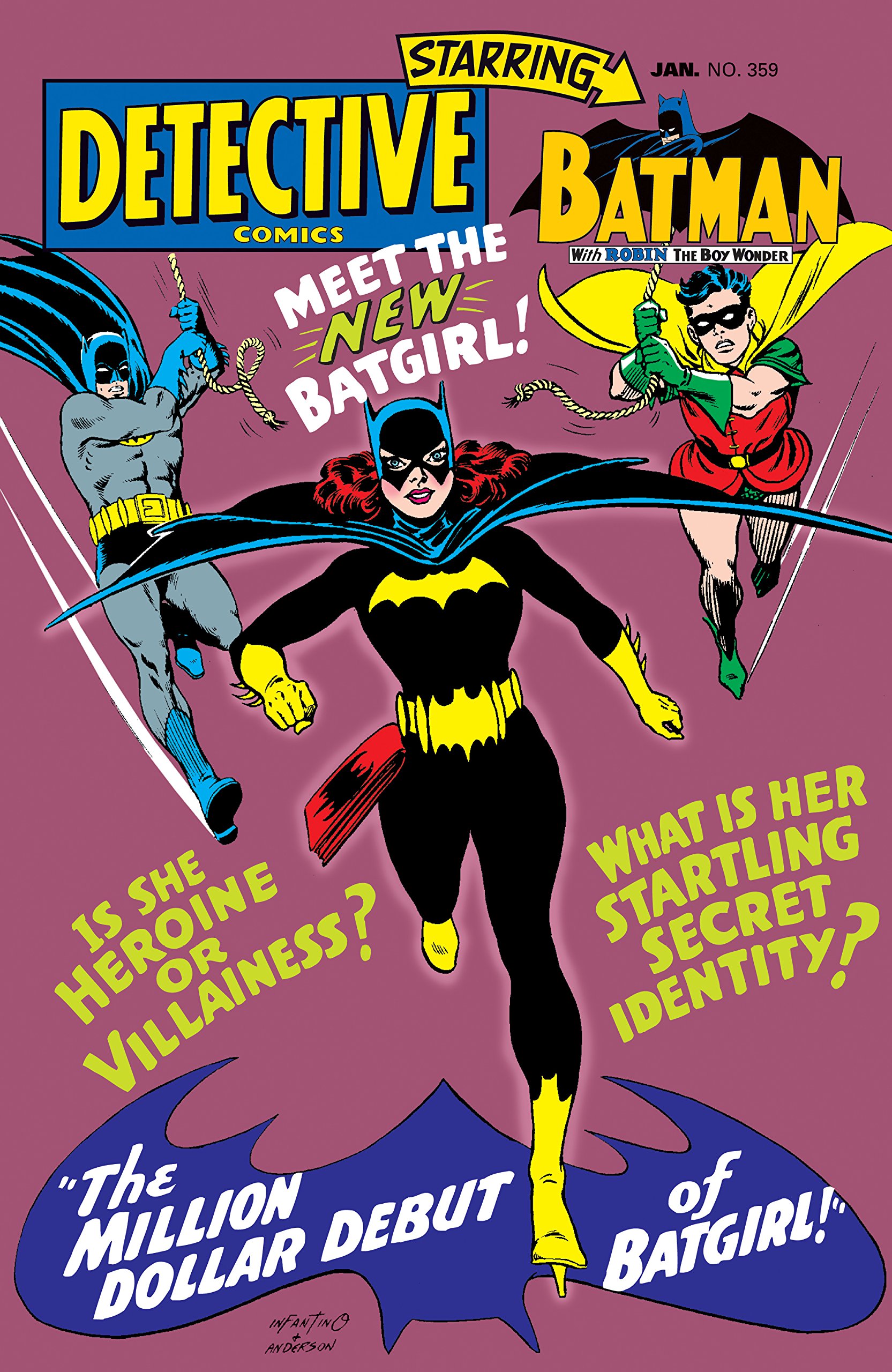 Assim, com a data de capa de janeiro de 1967, a Batgirl estreava em Detective Comics #359 — HQ que foi publicada pela primeira vez no Brasil no ano seguinte, em Almanaque do Batman da Ebal, editora que batizou, naquele e nos anos seguintes, a heroína com o nome de Menina-Morcego, Moça-Morcego, Mulher-Morcego e, finalmente, de Batmoça.